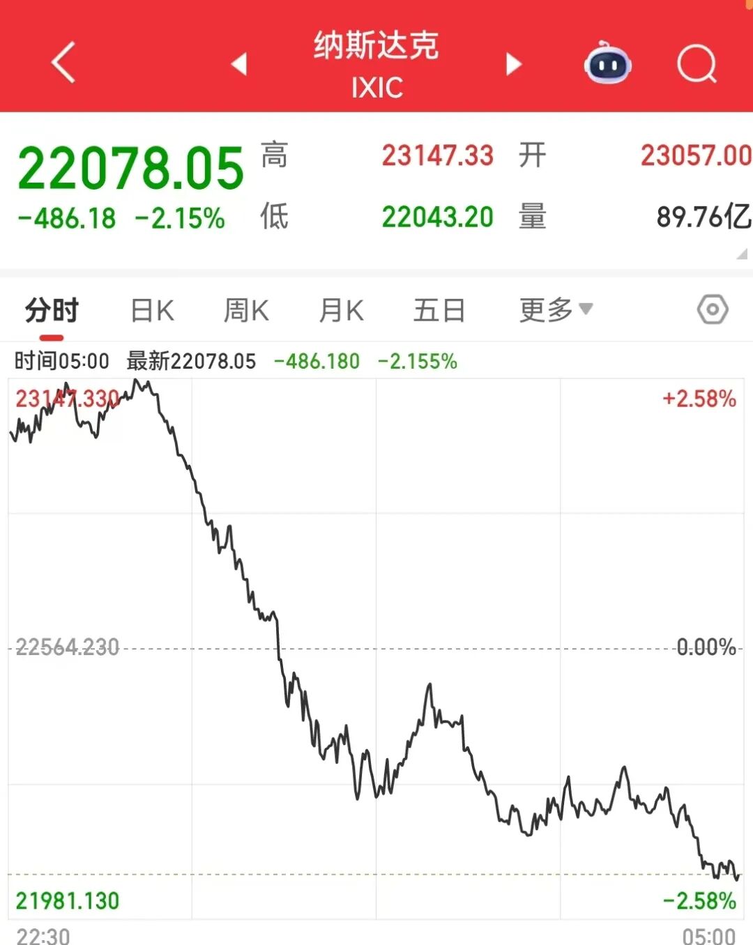 截至收盘,道琼斯指数跌0.84%,标普500指数跌1.56%,纳斯达克综合指数跌2.15%。