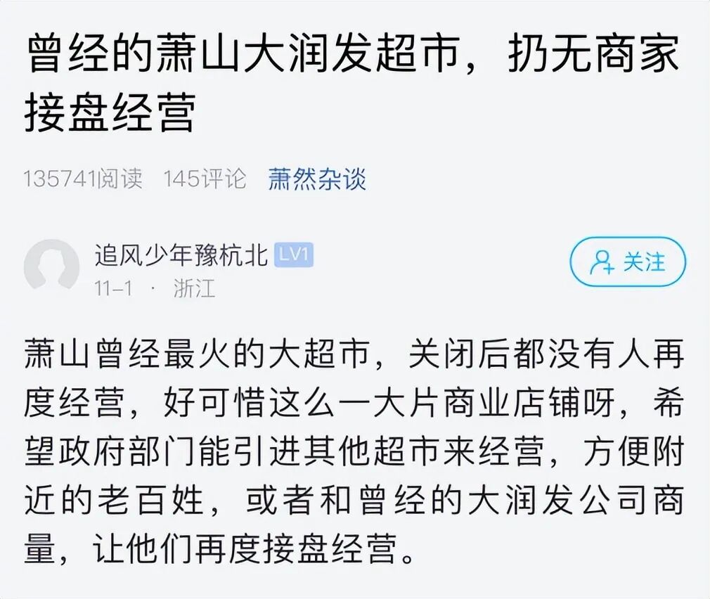 但也不乏另外几种声音:“我们这家大润发已经空了。”“人越来越少,感觉快撑不住了。”“倒是想支持,就是没人接盘了,可惜。”