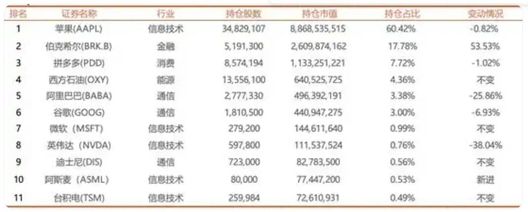 段永平第一重仓、占其投资组合比重高达6成的苹果本季度持仓微幅减少了0.82%(约29万股)。在最新一期的方略访谈中,段永平在谈到苹果股价时坦言:“不便宜了”。但另一方面,“如果把钱存在银行里拿一个多点的利息的话,那你还真不如买苹果。苹果最后有没有发展,其实我也不知道。当然它一直是很强的,它有那么多的用户,AI最后落地在哪,不还是要在手机上吗?苹果将来再翻一倍两倍三倍都是有可能的,但是我不知道,不是说它就一定不行,但是它不便宜。” 三季度大手笔增持伯克希尔是本季度最显著的操作。在三季度,段永平大幅增持伯克希尔181万股,增幅高达53.53%。段永平曾不止一次表达对巴菲特和伯克希尔的看好:“老巴找的人不会说差到哪里去,它这个文化是不会变的,它们不会是一家投机的公司,你拿着伯克希尔哈撒韦,肯定比随便买一个共同基金要好。” 另一笔引人注意的交易便是新买入了8万股阿斯麦,市值约7745万美元,排名第10。随着这家光刻机巨头的加入,加上组合中原有的微软、英伟达、台积电、谷歌,段永平在AI和半导体领域的合计占投资组合5.77%,市值约8.5亿美元。 最近关于AI泡沫论的话题热议不绝,机构之间也出现分歧,在最新一期方略访谈中,段永平谈到对AI行业,以及对英伟达、台积电、谷歌的看法。“AI这个东西我觉得至少掺和一下,不要错过了。完全错过了,好像有点不太合适。” 来源:潇湘晨报、如有侵权请联系删除