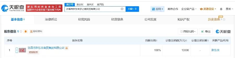股东信息显示,该公司由许昌市胖东来商贸集团有限公司全资持股。