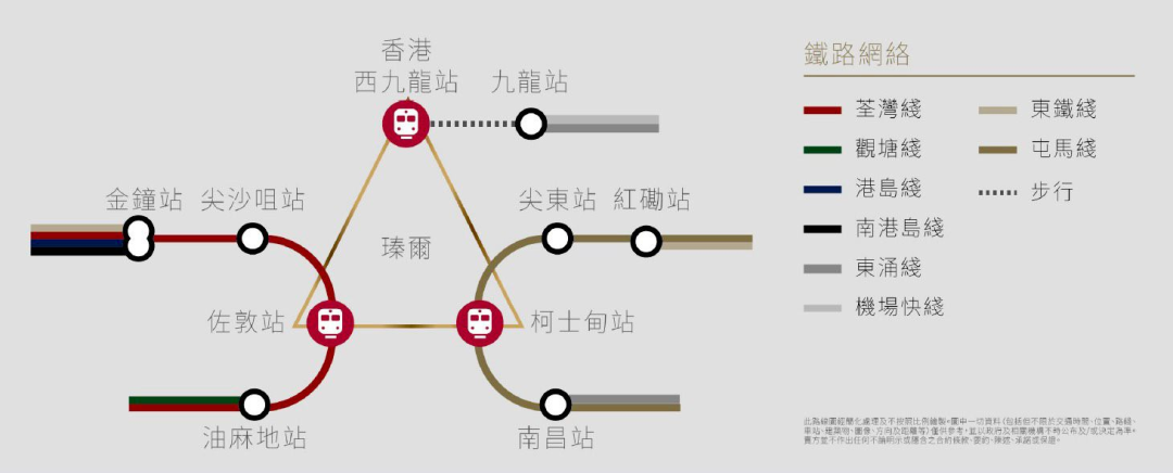 周边还有港铁柯士甸站、佐敦站,地铁7分钟直达金钟站,畅通港九CBD,让城市动线跟随你的生活节奏。
