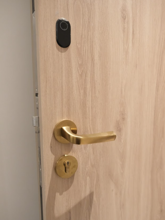 ArtisLock智能门锁、House Light金属壁灯、Artisan Switches、玄关门后的全身镜: