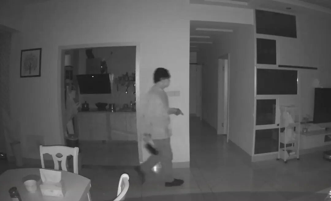 视频截图小区居民发布的一段家中监控视频显示,19日晚8时40分许,一名小偷从厨房走出,持手电筒四处窥探,随后从厨房取出一把菜刀,走向卧室门口。在发现房内有人后,其立即蹑手蹑脚退回,将菜刀放回原处后悄然离去。约一小时后,一名身穿居家服的男子从卧室内走出,开灯并用手机查看监控记录。