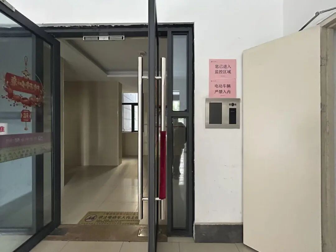 11月21日下午,红星新闻记者来到馨苑小区B区的物业公司——武汉一品行物业有限公司开发区分公司了解此事相关情况,工作人员称“不接受采访”。但事发地贴上了“您已进入监控区域”“电动车辆严禁入内”两张提示。