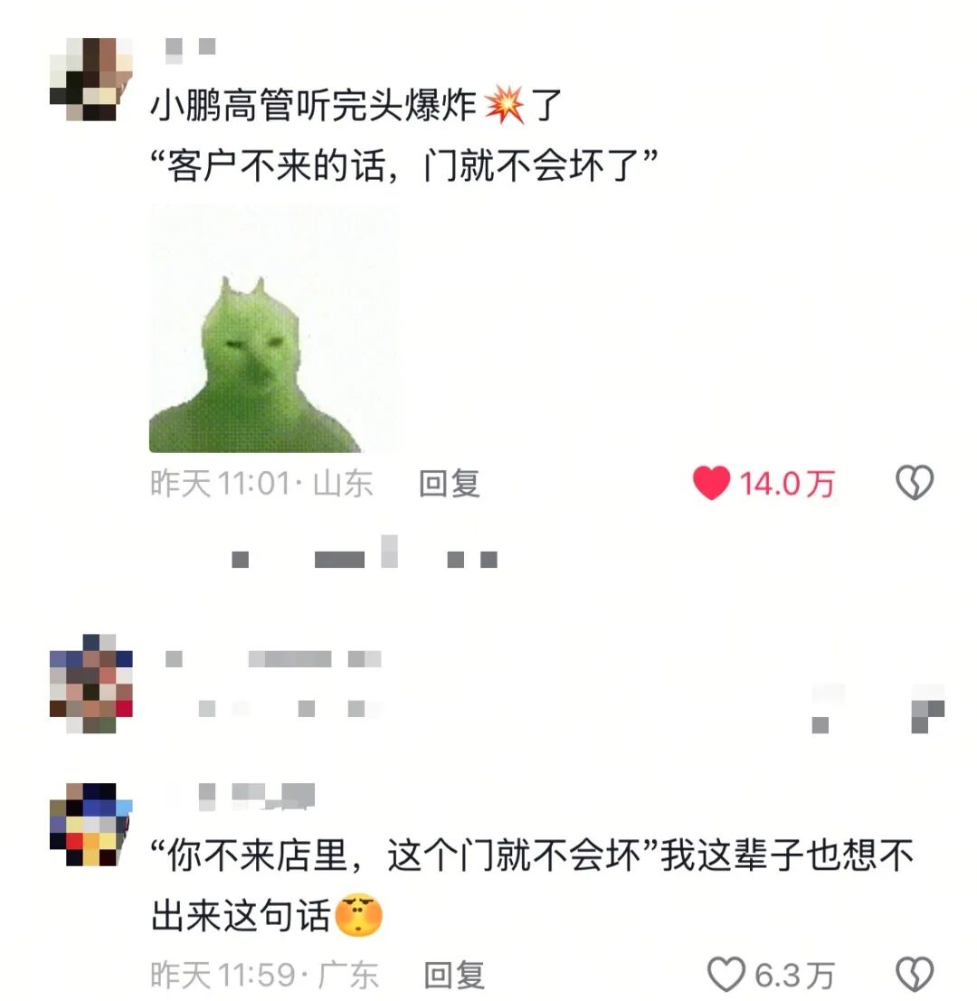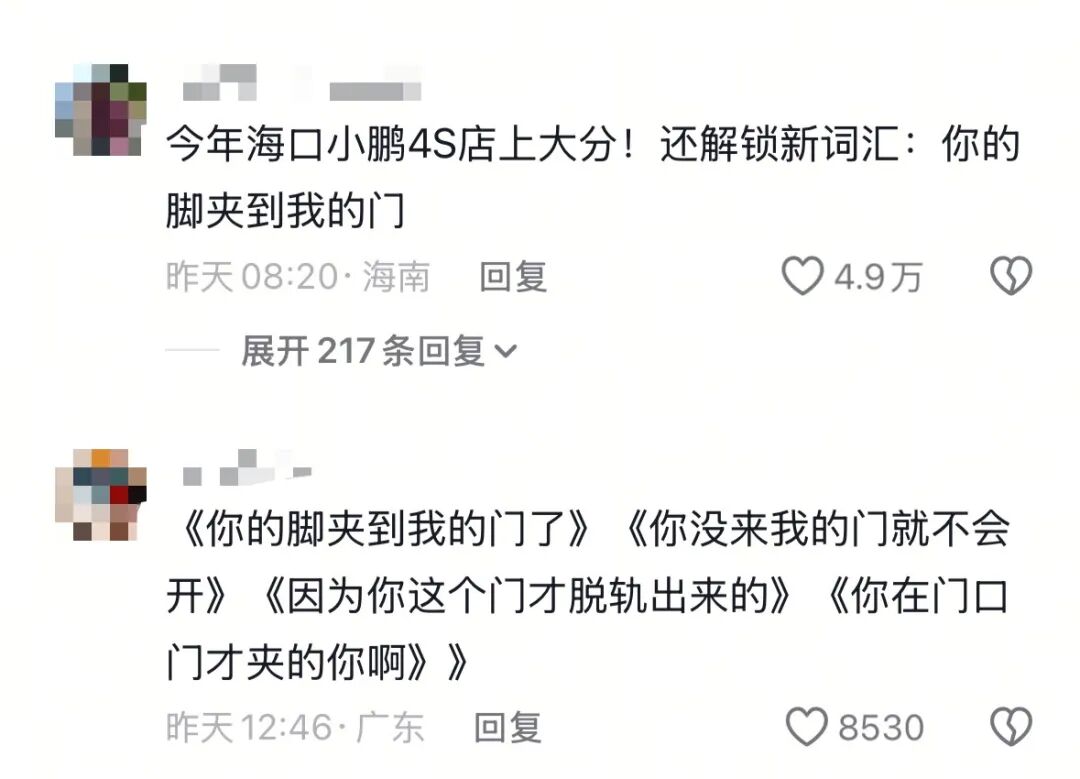 11月22日,潇湘晨报记者私信了发布视频男子,截至发稿暂未收到回复。在视频评论区,网友纷纷谴责4S店处置不当。“‘你不来店里,这个门就不会坏’,我这辈子也想不出来这句话”、“今年海口小鹏4S店上大分!还解锁新词汇:你的脚夹到我的门”……