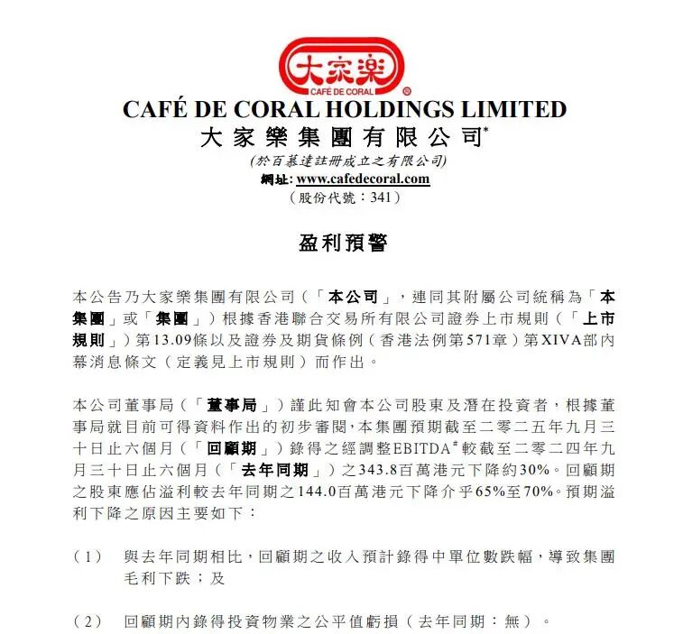图源:大家乐集团盈利预警