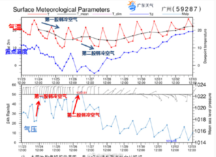 第一股冷空气是24日夜间到25日白天影响广东,全省气温小幅下降,广东海面风力逐渐加大到6~7级阵风8级。