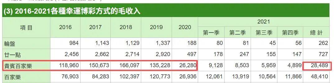 根据澳门博彩监察协调局2016–2021年毛收入数据,贵宾百家樂(即贵宾厅)收入从2018年的约1660亿澳门元,跌至2021年的约284亿澳门元,三年间跌幅超过80%。