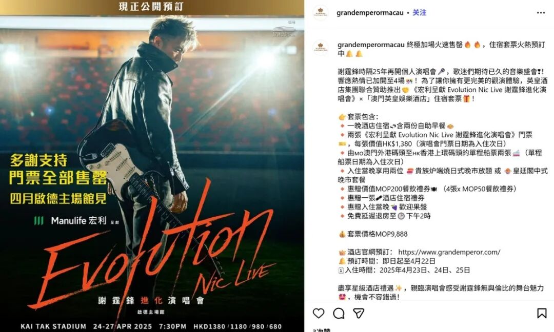 因《十二道锋味》拿下明星大厨称号的谢霆锋,在今年也回归歌手身份,并与英皇娱乐酒店进行联合宣发,带动演唱会与酒店配套收入回暖。