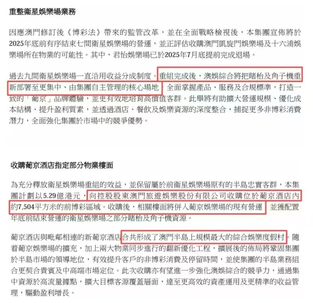 以及将赌桌重新分配回主场馆;收购葡京酒店博彩区并入葡京娱乐场,通过整合集群打造更大的综合娱乐度假体。