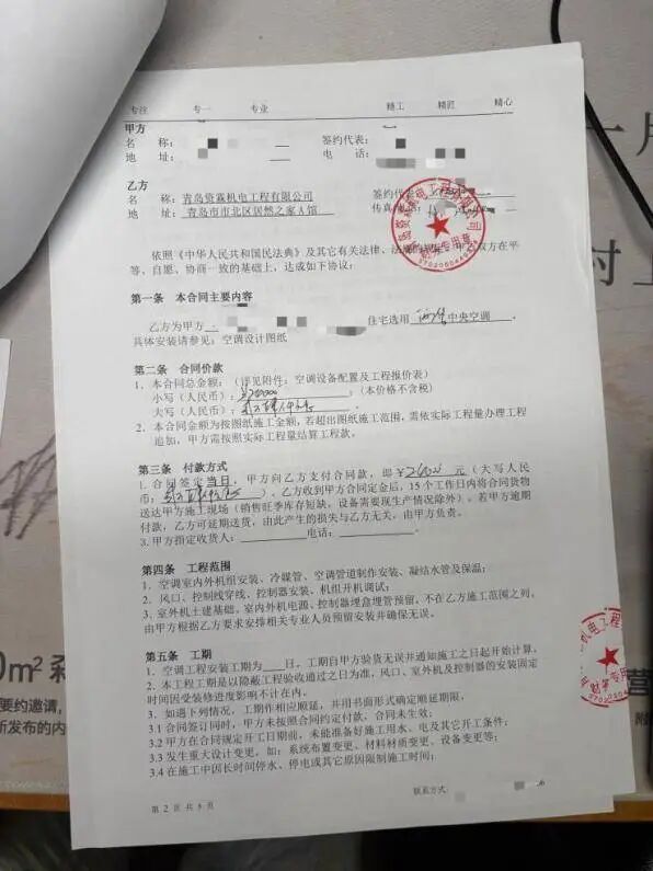 当天,李先生在青岛市崂山区深圳路与合肥路交叉口的海信空调专卖店,与陶姓工作人员现场签约,并于次日全款支付24000元购买中央空调。