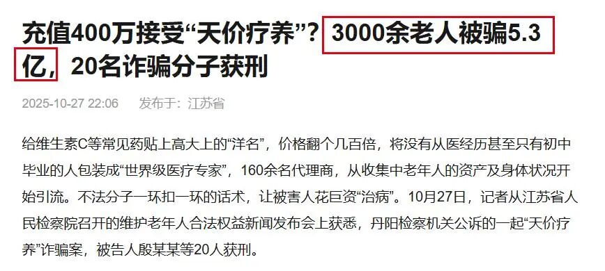 近日,江苏丹阳市检察机关依法对一起涉案金额巨大的 “天价疗养” 诈骗案提起公诉。