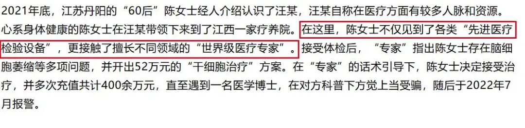 这起 “干细胞疗养” 骗局并非个例,背后折射出的 “伪科技” 套路,正在成为瞄准老年人钱包的新陷阱。