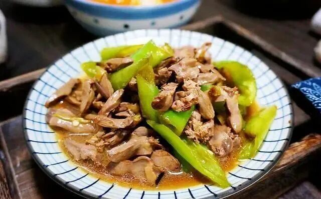 鸡心300克,青辣椒3个,盐3克,酱油2勺,白糖1勺,料酒少许,葱姜蒜适量