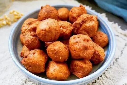 4.锅中放适量的油,油温六七成热时,揉好丸子,中小火,炸至金黄捞出。