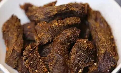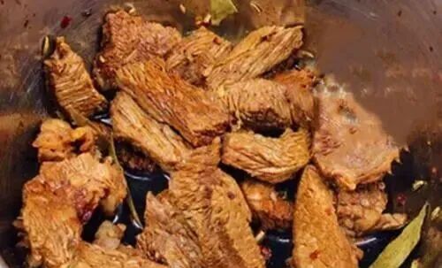 今天教大家自己做牛肉干,做法非常简单,用电饭锅就能轻松搞定,这样做好的牛肉干滋味十足,越嚼越有味道,喜欢的亲们一定要动手试试。 【自制牛肉干】食材:牛腿肉800克、生姜1块、香叶2片、八角1个、辣椒粉适量、孜然粉适量、五香粉1克、小茴香几粒。 做法: 牛肉切成条,我这里是切成条,大家切条切块都是可以的。把切好的牛肉条放入清水中浸泡2小时,注意中途换1-2次水,这样便于把牛肉中的杂质浸泡出来。 冷水下锅,放入浸泡好的牛肉捞出放入锅中,再倒入1勺料酒,大火烧开后将牛肉捞出。往牛肉中放入香叶、八角、辣椒粉、孜然粉、五香粉、小茴香、半勺盐、2勺糖、1勺老抽、3勺生抽调味。 把牛肉与调味料拌匀,让每一块肉都粘上调料,然后腌制30分钟,让肉充分入味。把生姜切成大片,铺到电饭锅底部,把牛肉倒入锅中,尽量摆平整一些。盖好锅盖,按下“煮饭”按钮加热15分钟,然后,焖5分钟。 加热结束后,将牛肉取出,一块一块地摆在盘中,然后放在桌子上让其自然晾干一晚即可食用。 小贴士:牛肉要选瘦一点的来做,喜欢吃辣的可以多加一点辣椒粉,根据牛肉条的大小要适量的调整煮制的时间,煮制结束后,铺在电饭锅底层的姜片会有些糊,这是正常现象。如果觉得自然晾干一晚时间比较久,可以把煮好的牛肉干放入烤箱,上下火60度,热风烘烤1小时,效果会非常好。