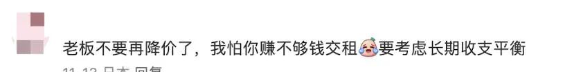 有人担心他赚不到钱交租,还有人开玩笑说:“老板再降我们就天天来‘薅羊毛’啦!”