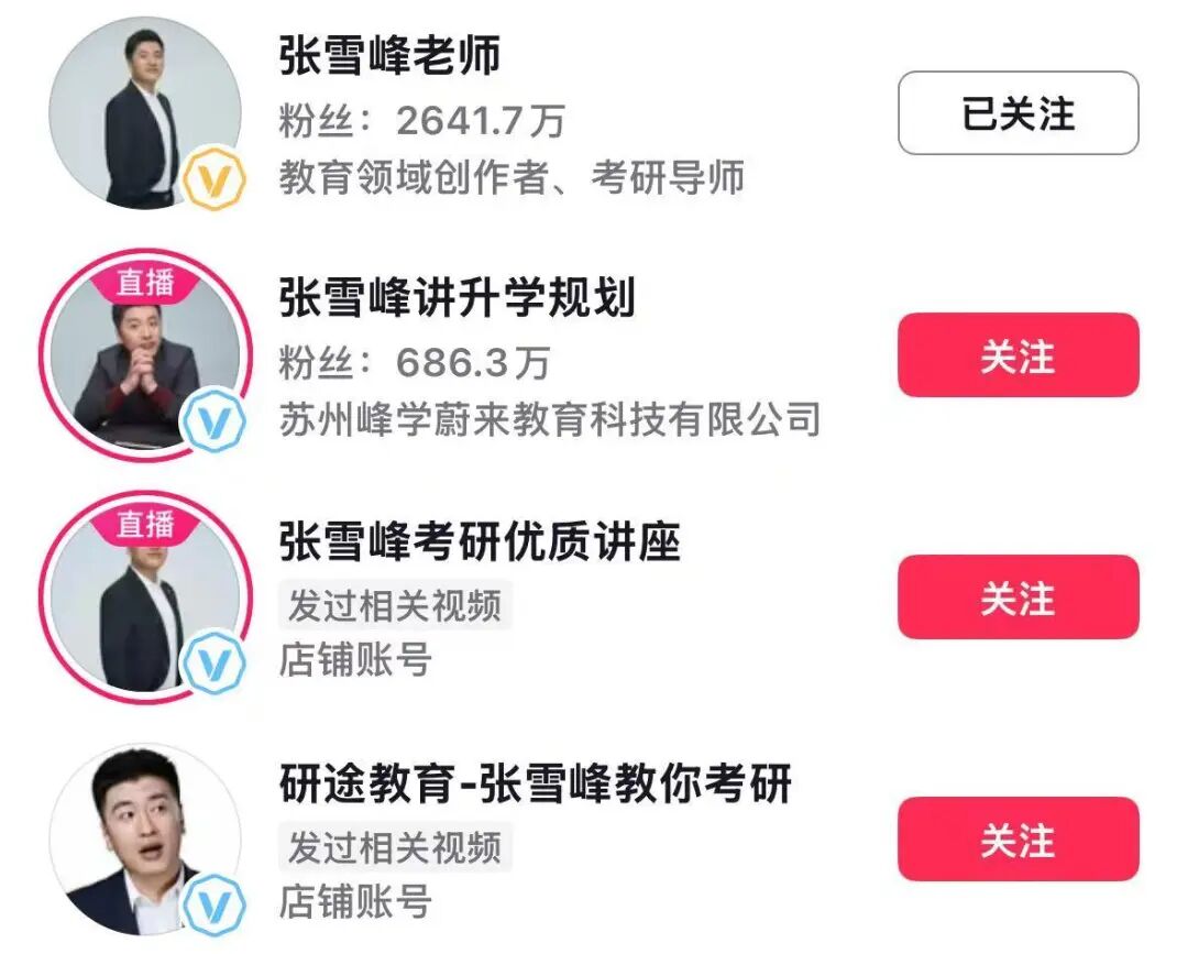 张雪峰相关账号正在直播