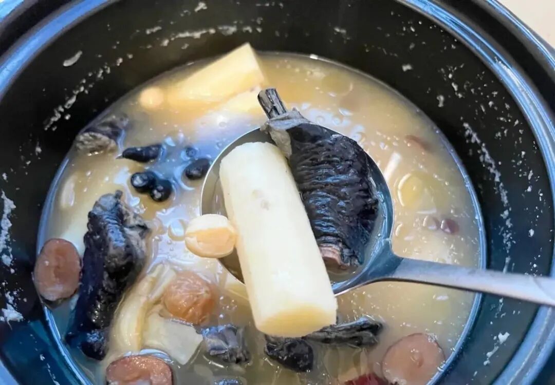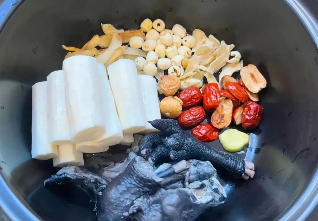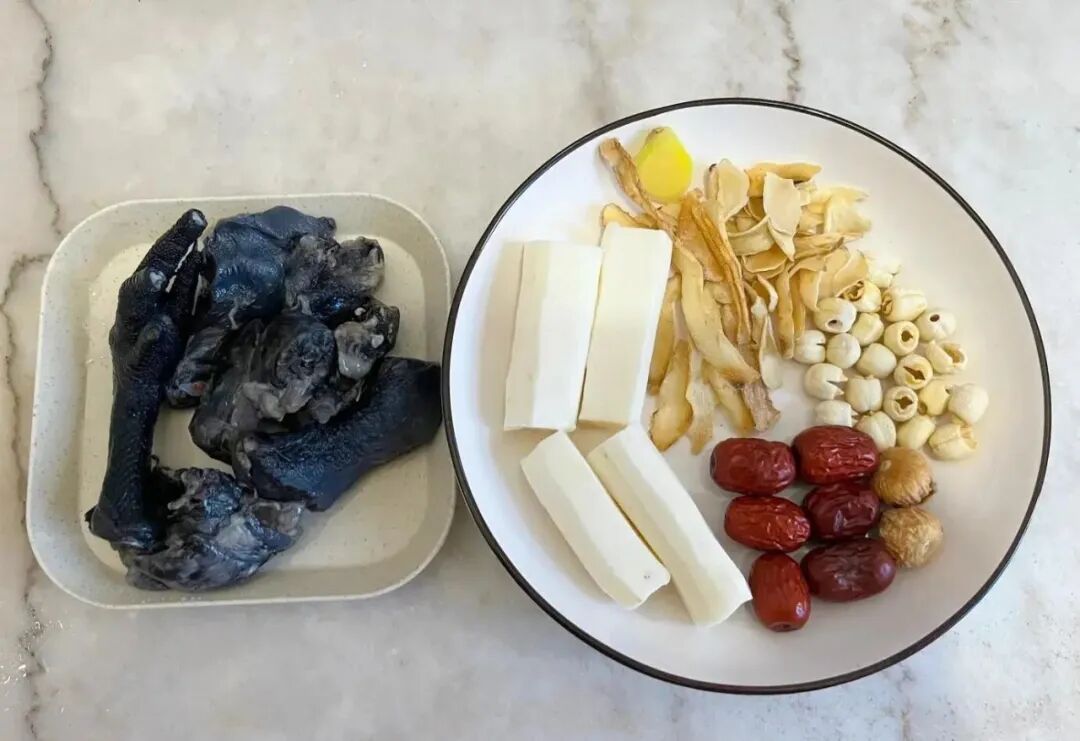 今天分享一道玉竹山药乌鸡汤 乌鸡肉香嫩滑、山药粉糯绵密 汤香味美、滋润甘香 润燥益脾胃、清热安神 山药健脾养胃、益气养阴 玉竹生津润燥、滋阴补气 莲子补脾止泻、养心安神 百合养阴润肺、清心宁神 搭配乌鸡、无花果、红枣一起煲汤 养阴润燥、补益脾胃、宁心安神 食材:乌鸡、山药、玉竹、莲子、百合、无花果、红枣、姜 调料:盐、料酒 乌鸡冷水下锅加料酒焯水后洗净 山药去皮切段 玉竹、莲子、百合、无花果浸泡10分钟 红枣去枣核 将所有食材放入汤锅中加适量清水大火煮沸 盖上盖子小火慢煲45分钟 时间到加盐调味就完成啦 鲜香美味的玉竹山药乌鸡汤就做好啦 汤鲜味美、清补滋润、香甜可口 秋冬季节多给自己和家人安排滋润养生汤水哦…… 来源:千厨百味、如有侵权请联系删除