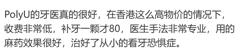 其他港校也大差不差,在校的同学可以看看自己学校的医疗资源,像补牙、洗牙这种,能在学校做的千万不要错过!