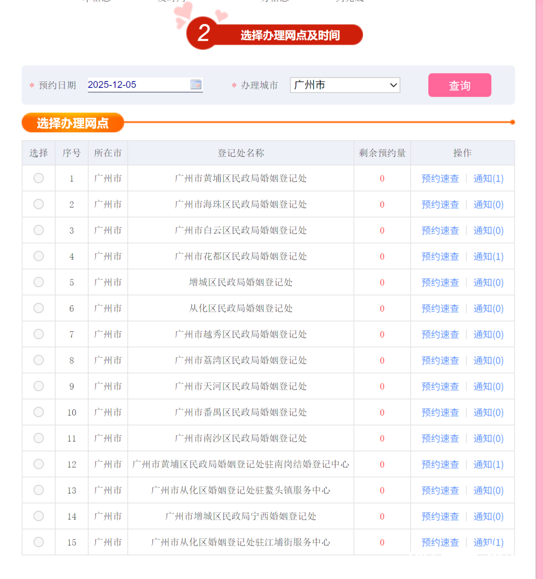 12月6日,结婚预约号则只剩下其中一个登记处有少量号源。