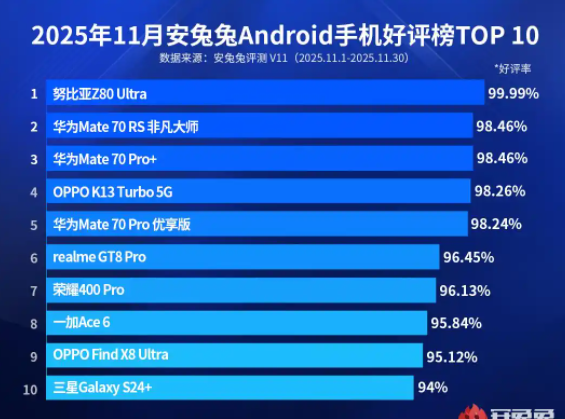 在竞争激烈的智能手机市场里,用户口碑一直是衡量产品实力的重要标尺,二零二五年十一月安兔兔发布的安卓手机好评榜引了不少关注,华为凭着三款机型强势冲进前五,再次用硬核实力证明了自己在高端市场的统治力