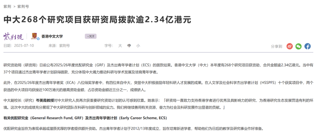 中大获研究项目资助超2.34亿