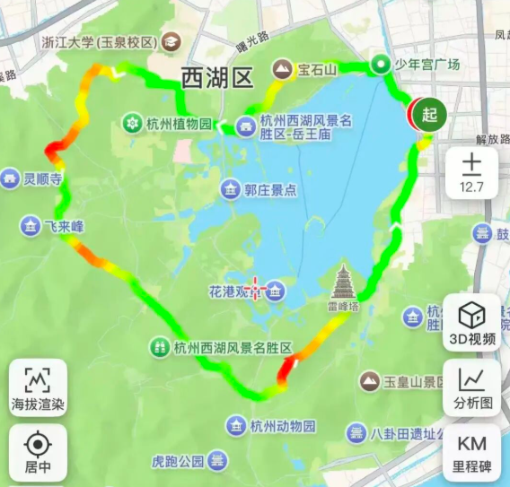 最近天气不错,一条沿着杭州西湖徒步“画出”爱心的路线在网上走红,该线路全程约20公里,累计爬升高度700-780米。