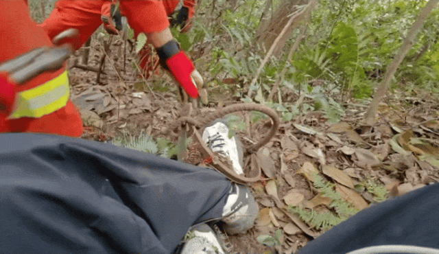 近日,一男子打卡这条“爱心路线”,在西山游步道附近爬山时不慎走错路,结果左脚被野猪夹卡住,无法动弹。