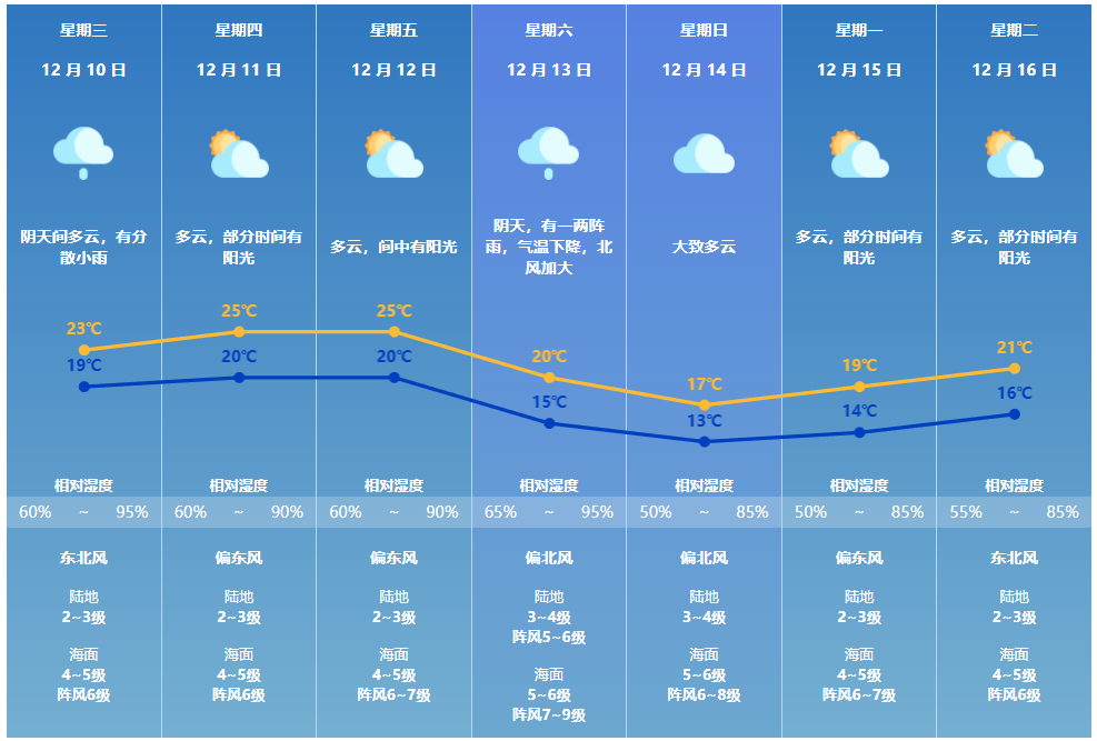 13日早晨冷空气开始自北向南快速南压,冷空气配合高空波动,13-14日将给广东带来降温和小到中雨天气,其中,13日白天气温将持续下降,体感阴冷,白天最低气温将出现在傍晚前后。