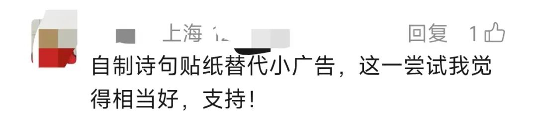 据悉,不干胶贴纸造价较贵,打印店价格约为一张接近一元,但可以避免纸张遇水融化,不会给其他用户带来麻烦。目前,fia和废话王阿姨已经贴出了130多张贴纸,“后续还是会带上酒精湿巾,也得随身携带小贴纸,擦不掉再贴,”fia说道。