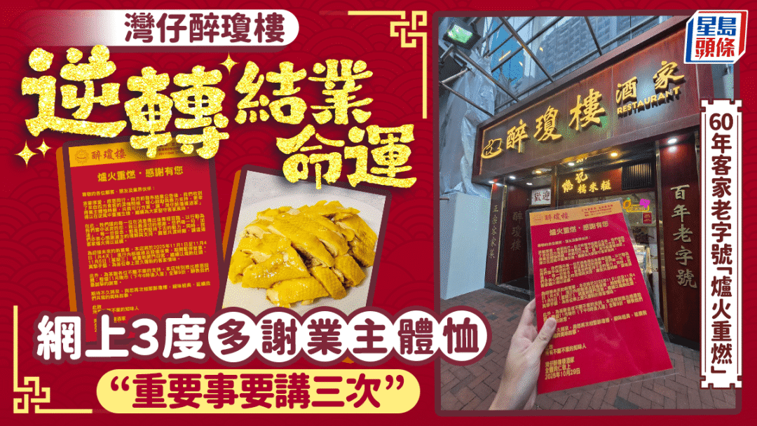 在香港扎根逾60年的湾仔醉琼楼,向来主打正宗客家风味菜式,其招牌盐焗鸡、梅菜扣肉、客家盆菜及双冬羊腩煲等,陪伴食客度过不少年月。不过,醉琼楼于9月中曾发文宣布,指近年因面对疫情、消费模式转变及经营环境的挑战,难敌市场逆流,决定于10月底结业离场