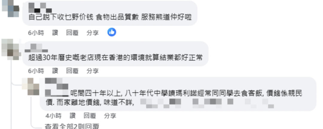 但网民也不是一面倒地骂,有人为店家抱不平,指出观塘清拆后人流锐减,这个位置本来就难做;也有人安慰“老店有老店的价值,加油!”