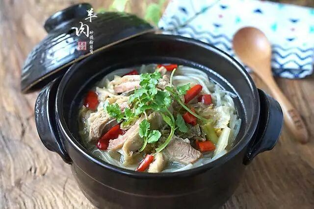羊肉怎么吃更美味又健康?因为羊肉性温,所以炖是最好的养生方式食用方法,炖的时候里面可以加入丰富的蔬菜起到中和降火的作用。 【食材】羊肉400克、粉条50克、酸菜2棵、蒜子6个、香菜2棵、红干椒7个、生姜4片、葱3棵、盐适量 【做法】 1、想准备好所需食材 5、锅内放凉水,将羊肉、生姜片放进去煮20分钟后捞出,刚煮的时候有浮沫要捞出,煮羊肉的高汤不要丢弃7、锅预热,将肥羊肉放进锅内炸出油来后,放入其他羊肉翻炒2分钟11、快出锅的时候放入泡好的粉丝煮3分钟左右,关火,撒上葱、蒜、香菜即可1、羊肉提前煮一下,既可以让肉好切,而且肉质嫩,后面炖菜的时候容易熟 2、用肥肉部分榨油,可以让汤汁更加充满羊肉的香味 3、酸菜尽量炖的时间长一些,味道才最美,可以渗入羊肉的香味 来源:千厨百味、如有侵权请联系删除