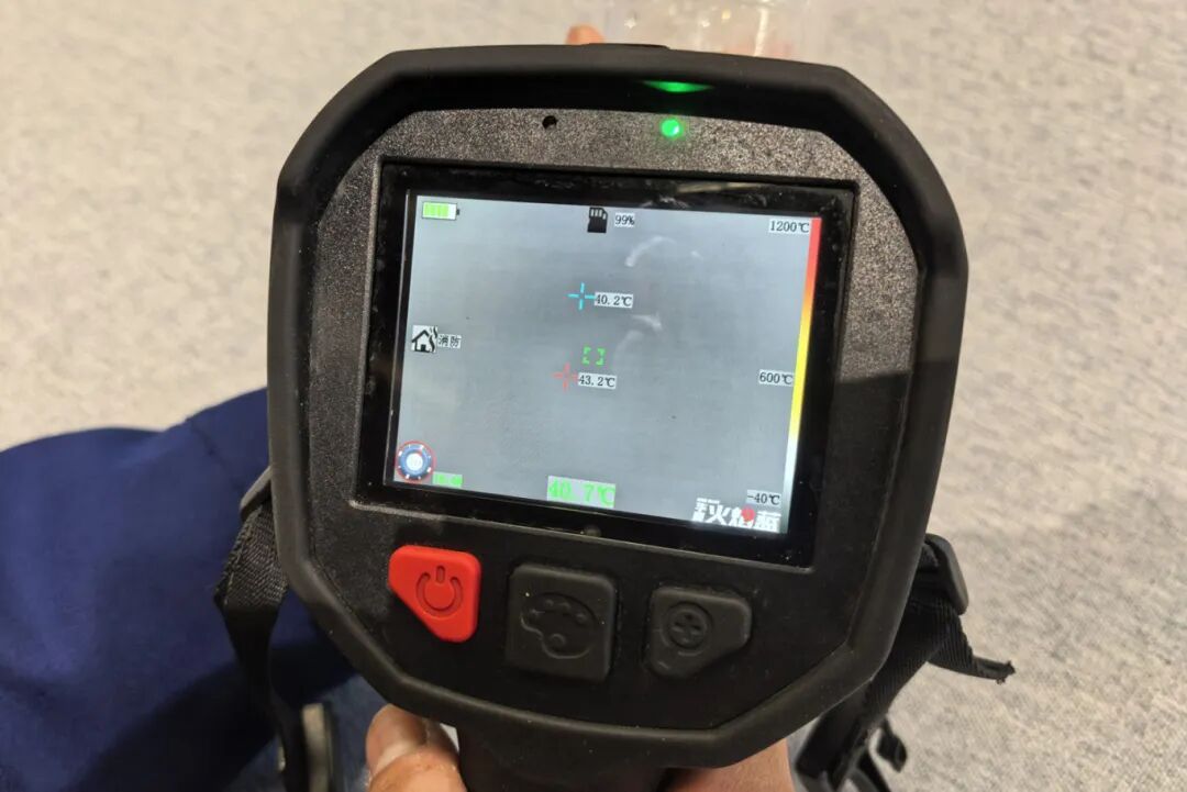1小时后,消防员对矿泉水进行测温,热成像仪显示温度为40.7℃。在暖宝宝为矿泉水加温的过程中,用手触摸明显可感觉到毛巾包裹内的矿泉水温度在不断上升。