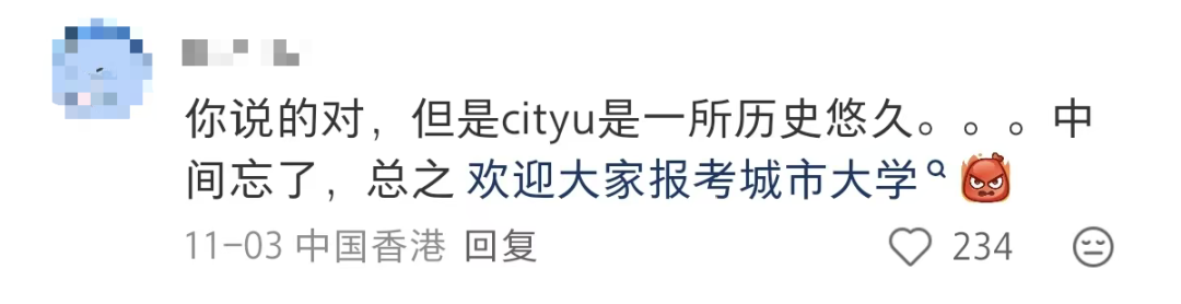当大家在搞抽象时,同样能看到城大的学生在评论区留言: