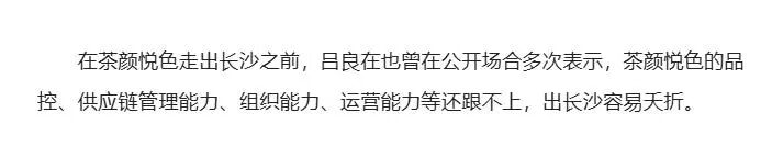 茶颜悦色创始人吕良就曾表示过,茶颜悦色的慢扩张,是因为在品控、组织能力以及供应链能力上仍有不足,出去后可能会面临无法控制的局面。