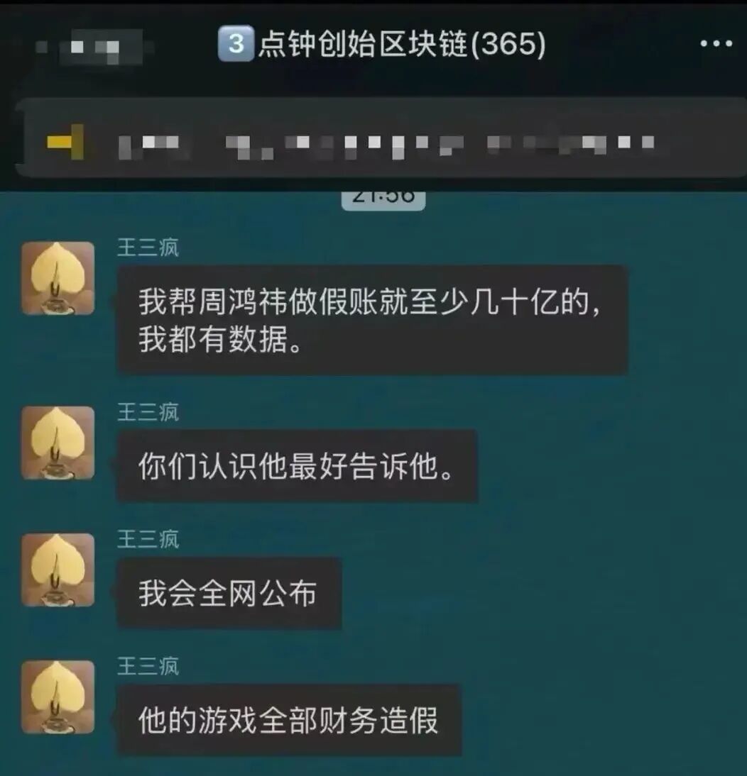 玉红在群聊中表示:“我帮周鸿祎做假账就至少几十亿的,我都有数据。我会全网公布,他的游戏全部财务造假。”玉红在群内强调自己没有被盗号。