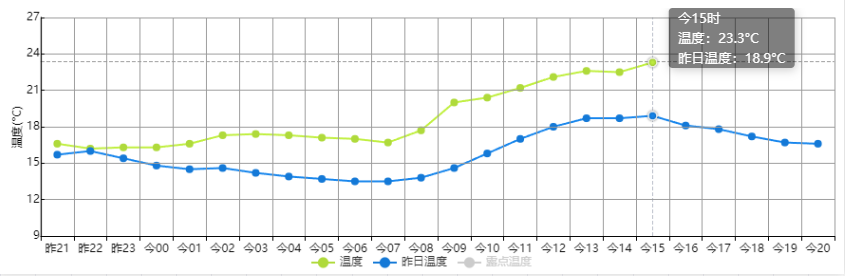 (12月15日21时至16日15时珠海国家基本气象站气温变化曲线示意图)