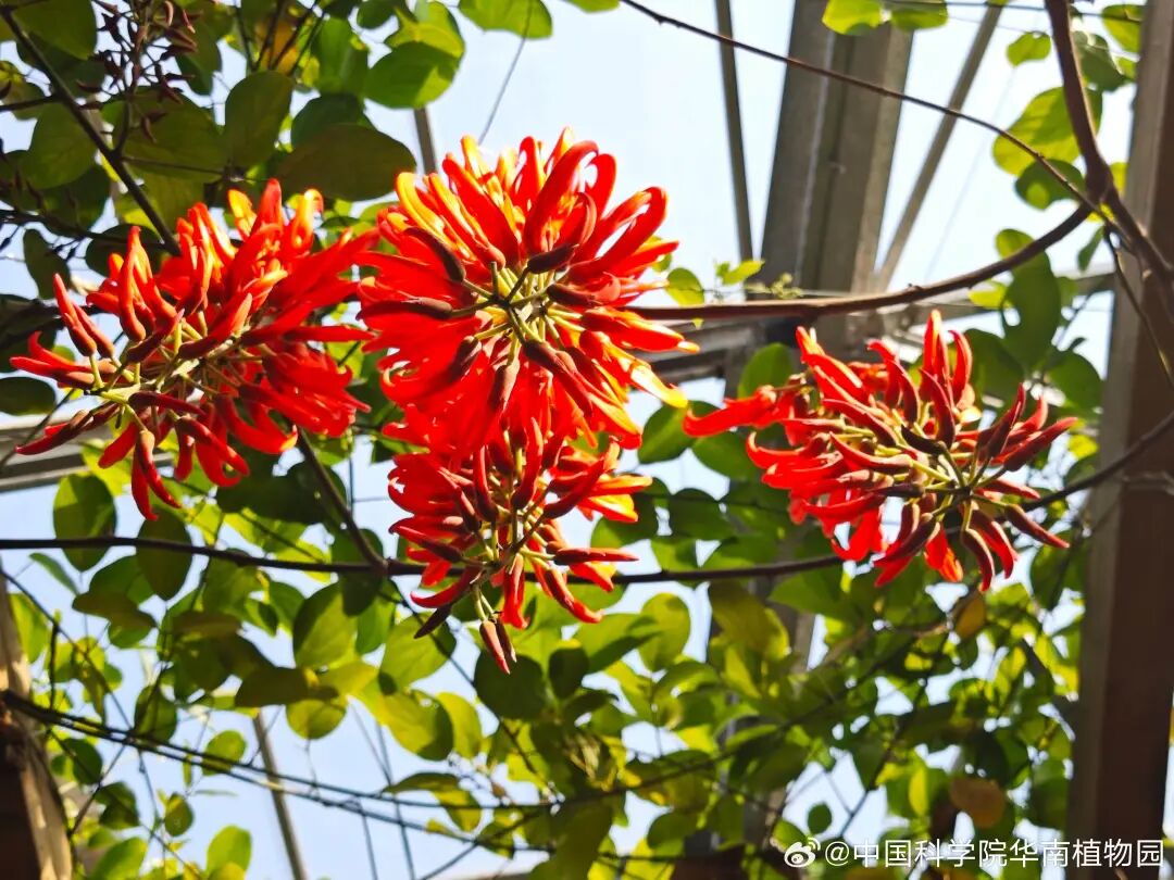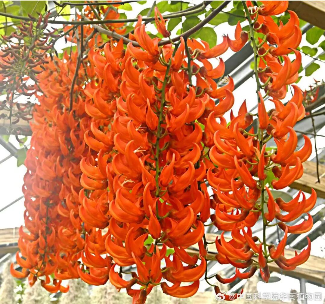 热着热着,华南国家植物园的红花油麻藤突然爆开了一串串烈火红焰!鲜艳的色彩正如12月广东不减的暖意。一睹为快↓↓↓