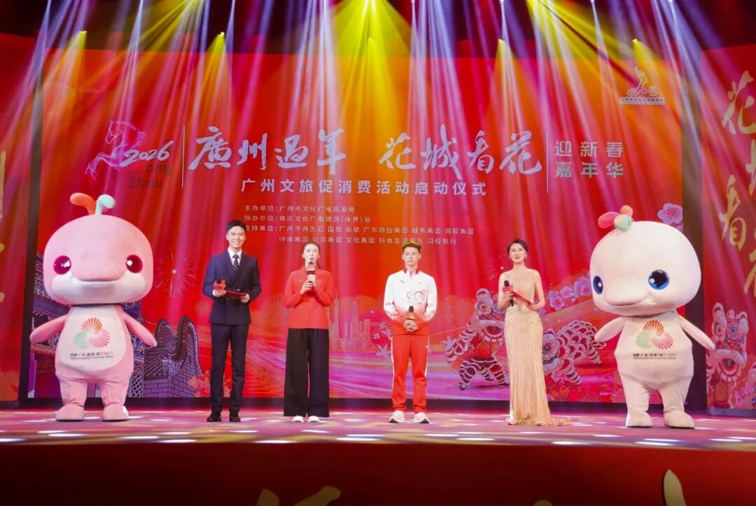 作为“粤享暖冬 乐游广东”消费季的广州文旅行动,12月16日下午,“广州过年花城看花”迎新春嘉年华——广州文旅促消费活动启动仪式在市文化馆举行。活动由广州市文化广电旅游局主办,市商务局,各区文化广电旅游(体育)局、抖音、同程旅行等多单位支持,近400名各界代表参与。活动以2026新春十大主题文旅活动为核心,联动线上线下营销推广、冠军名人推介、优惠补贴等亮点环节,正式拉开广州新春文旅消费旺季序幕。