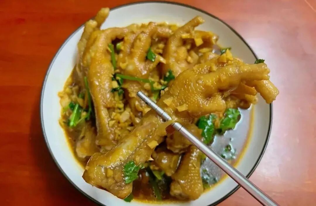 今天分享一道沙姜鸡爪煲 沙姜香味浓郁、香气诱人 鸡爪红亮油润、软嫩鲜香、好吃入味 这香味、这口感大人小孩都爱吃 食材:鸡爪、沙姜、姜、蒜、芫茜 调料:花生油、盐、生抽、老抽、蚝油 鸡爪买回来先在清水中浸泡30分钟 泡出血水后洗净沥干水分 沙姜、蒜切成末 姜切成姜丝 PS:沙姜准备多一些,这样做出来的鸡爪煲才够香浓入味 热锅热油放入沙姜末、蒜末、姜丝爆香 再倒入鸡爪一起翻炒 把鸡爪炒至表皮基本变色 加2勺生抽、1勺蚝油、1小勺盐和少许老抽 调味炒出酱香味 加适量清水大火煮沸 盖上盖子中小火焖10分钟 最后大火收汁放入芫茜就完成啦 鲜香美味的沙姜鸡爪煲就做好啦 一开盖香气四溢、香味诱人 鸡爪软嫩入味、皮滑筋Q弹有嚼劲 老少皆宜的一道美食 来源:千厨百味、如有侵权请联系删除