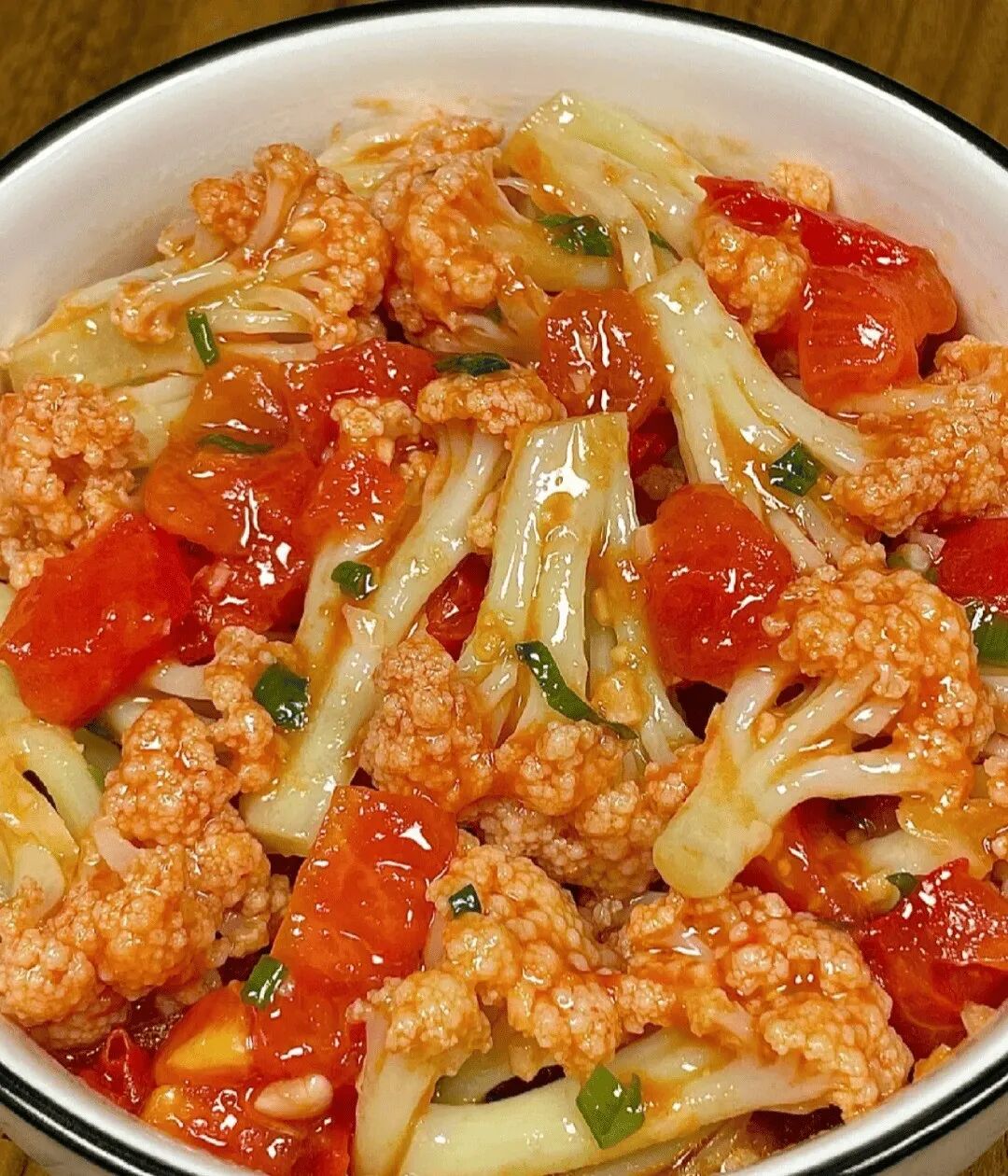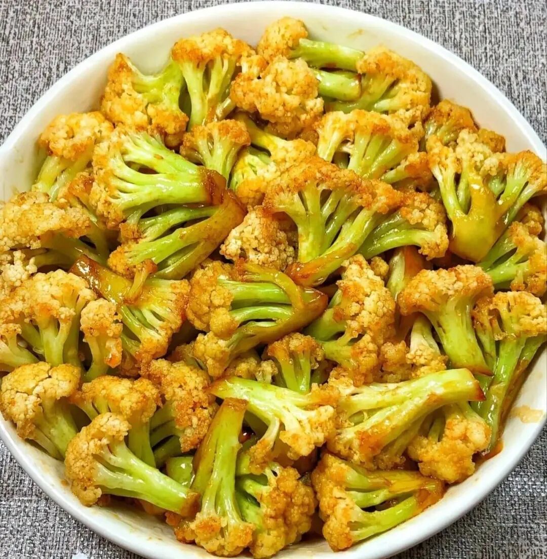 5. 继续翻炒约1-2分钟,使花菜充分吸收汤汁即可出锅