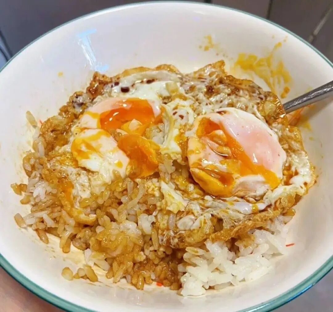 炸虾裹上调好的酱料,撒欧芹碎,铺在米饭上即可食用。