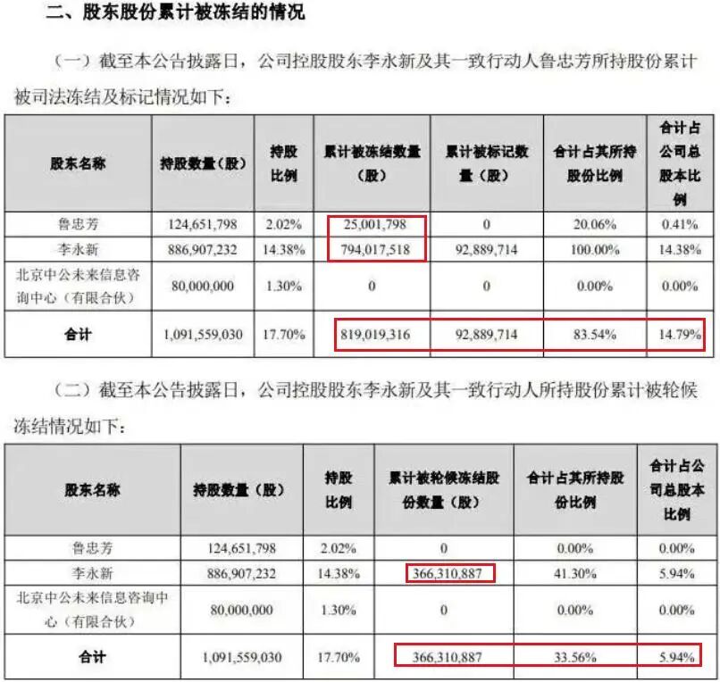 不仅学员“在线讨退费”,今年以来,企业的高层也是多次被冻结股份、被司法强制执行,李老板的7.94亿公司股权被质押,3.66亿所持股份被轮候冻结。