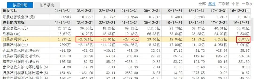 如今再看企业的财报,过去十余年的精心打理,迎来了连续3年的巨亏,累计亏损超36.8亿元,年创收从69.12亿元跌至30.86亿元,可以说是双双“腰斩”了。