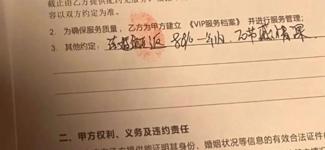 霸王合同与“捂嘴协议”:退款成封口费 蒋雅琪在另一家婚介机构的遭遇同样令人心寒。她签下合同后才发现退款条款极为苛刻,且机构以“合同约定”为由拒绝全额退款。部分受害者为了拿回部分款项,被迫签署“捂嘴协议”,不得在网络曝光真相,否则退款将被收回。这种“退款即封口”的潜规则,令受害者苦不堪言。 虚假承诺层层设套:高颜值、高学历“优质男”全是假象 婚介机构往往在初期用精心修饰的资料吸引客户,承诺匹配“海外硕士、年薪百万、有房有车”的理想对象。可实际介绍的人选却大相径庭:秃头、口臭、照片与本人差距巨大,甚至连身份都造假。红娘们利用心理操控,让求偶者不断怀疑自己、怀疑婚姻,催促她们购买心理课程,陷入恶性循环。