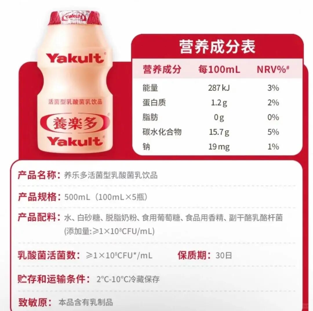更直观的打击来自官方判级。以上海试行的饮料“营养选择”标识为例,养乐多经典红瓶因其每100毫升高达15.7克的碳水化合物(糖)含量,被明确归入建议“少喝”的D级。