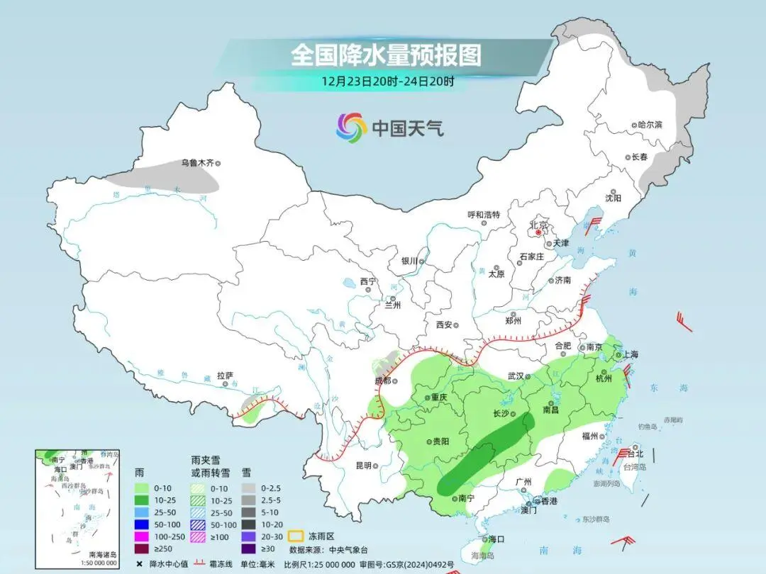 24日,长江沿江及其以南地区有大范围降雨,以小到中雨为主。之后25日开始,全国大部地区又将进入一段雨雪稀少的时期。