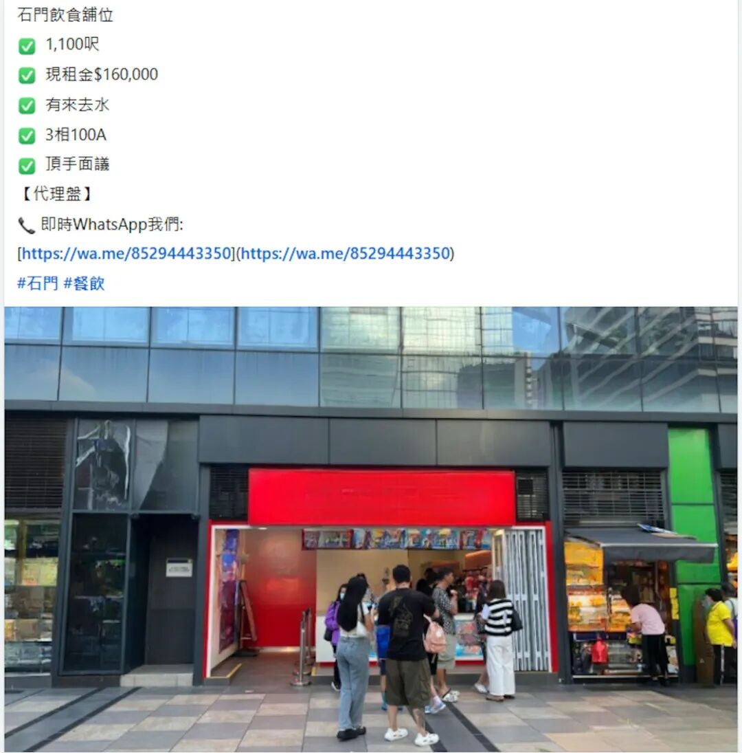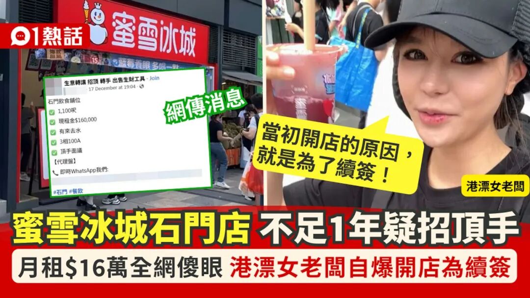 近年来,内地知名连锁茶饮品牌蜜雪冰城大举进军香港市场,凭借“高性价比”和“亲民价格”迅速赢得不少年轻消费者的喜爱。然而,位于沙田石门京瑞广场的一家蜜雪冰城门店,却在开业不到一年的时间里传出招顶手消息,背后隐藏的故事令人深思。 这家蜜雪冰城门店面积约1100平方呎,月租高达16万元港币。近日,有地产代理在Facebook的生意转让群组发布了该店铺的招顶信息,附带详细的店铺照片和租金情况。虽然店面名称被用红格遮挡,但凭借位置和外观,众多网民纷纷认出这正是石门京瑞广场的蜜雪冰城。 高昂的租金引发网友热议:“16万一个月?这都能租?有病吧!”“现在市道这么差,月租3万都难撑得住。”“卖多少杯奶茶才能撑起16万租金?”这些评论道出了不少创业者的心声,也反映出香港零售和餐饮业的巨大经营压力。